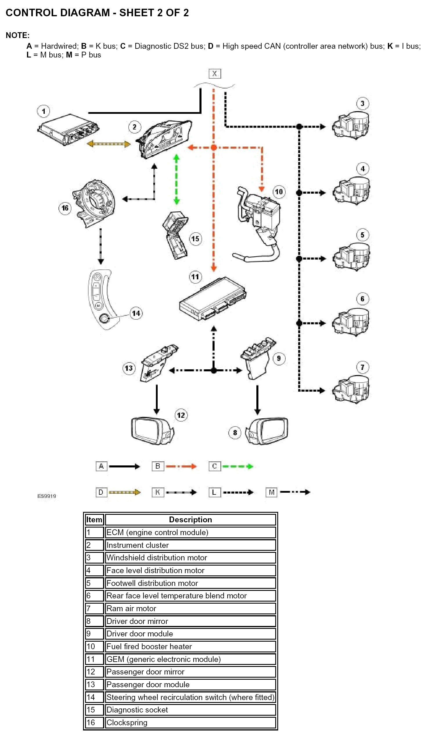 - The ambient temperature to the ATC (automatic temperature control) module and GEM (generic electronic module) on the K bus.