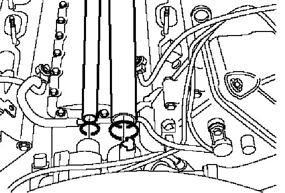 4. Position new gaskets and coolant manifold to cylinder heads, fit bolts and tighten to 10 Nm (7 ft. lbs.).