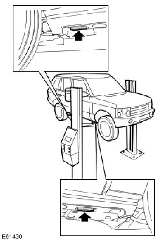 1. Position the vehicle with the centre of the lift pillars aligned approximately with the front of the driver/passenger seat cushions.