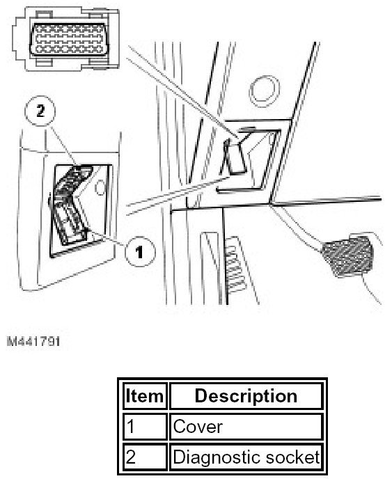 The diagnostic socket is located in the fascia, in the driver's stowage tray. The socket is secured in the fascia panel and is protected by a hinged cover.