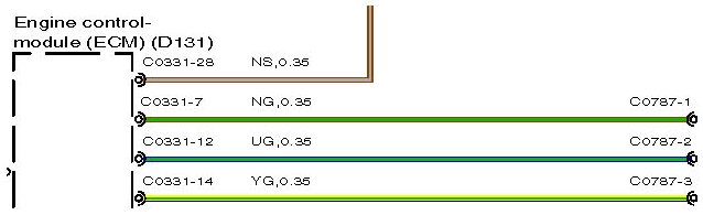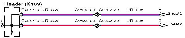 The wire length (in millimetres) is displayed after the colour and cross sectional area; for example, SR,0.35,480. In this example, the figure, 480 indicates the approximate position of the harness splice is 480mm from connector C2335.