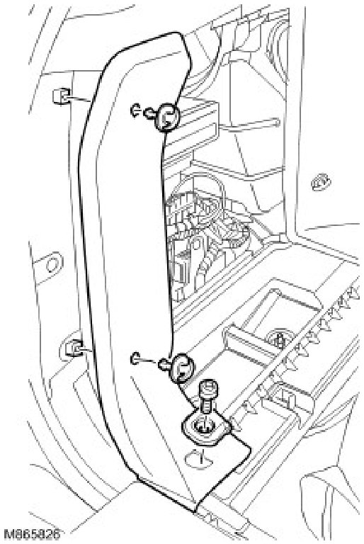 7. Remove the trim clip securing the front loadspace trim panel LH to the floor stowage compartment.