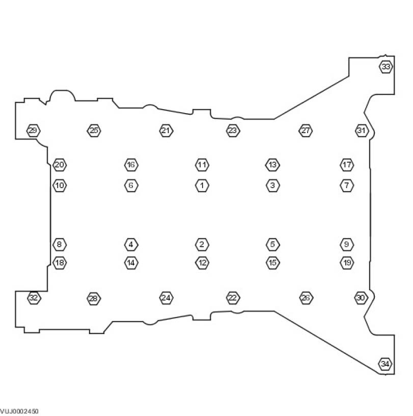 2) Stage 2: Bolts 33 to 34 tighten to 15 Nm (11 ft. lbs.).