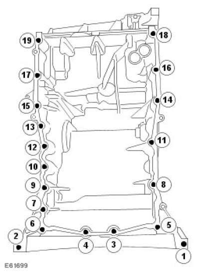 27. Tighten the oil pan bolts in the sequence shown to 20 Nm (15 ft. lbs.).