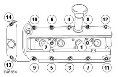 ^ Install the RH valve cover bolts to the positions previously noted.