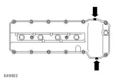 NOTE: Apply two beads of silicone gasket sealant as shown on the illustration. The application of the sealant must be 3 mm (0.118 in) diameter 12 mm (0.47 in) long. Install the valve cover immediately after applying the sealant. The cover should be fitted directly to the head without smearing the sealant or the seals.