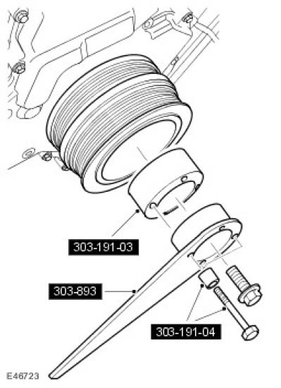 61. Using the special tools tighten the crankshaft pulley bolt.