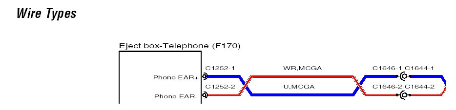 Connectors and header joints are identified by their corresponding connector number with a numbered suffix to indicate the pin-out detail of the wire, i.e. C0292-1 identifies connector 292, pin number 1. Wire insulation colours are listed in a table at the end of this section. Where wires have a predominant colour with a secondary colour tracer, the main colour is identified first, i.e. LGS - light green with a slate tracer.