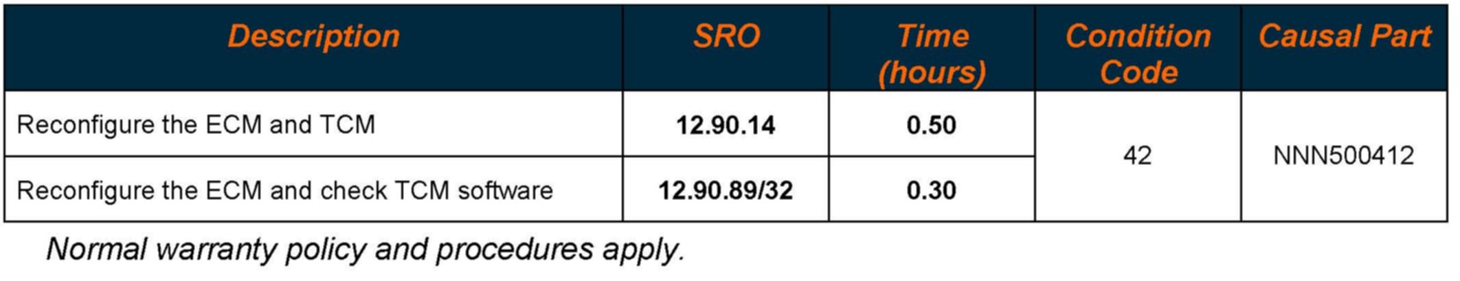 In the event of a customer concern of the above, refer to the Repair Procedure outlined below to update the Engine Control Module (ECM) software, check the Transmission Control Module (TCM) software, and if necessary update the TCM software.