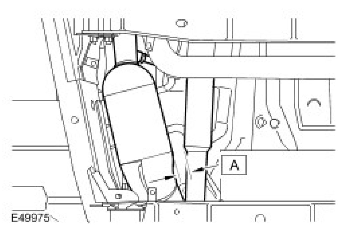 CAUTION: Make sure there is a clearance (A) of 25 mm to 30 mm between the closest points of the LH catalytic converter and the front driveshaft.