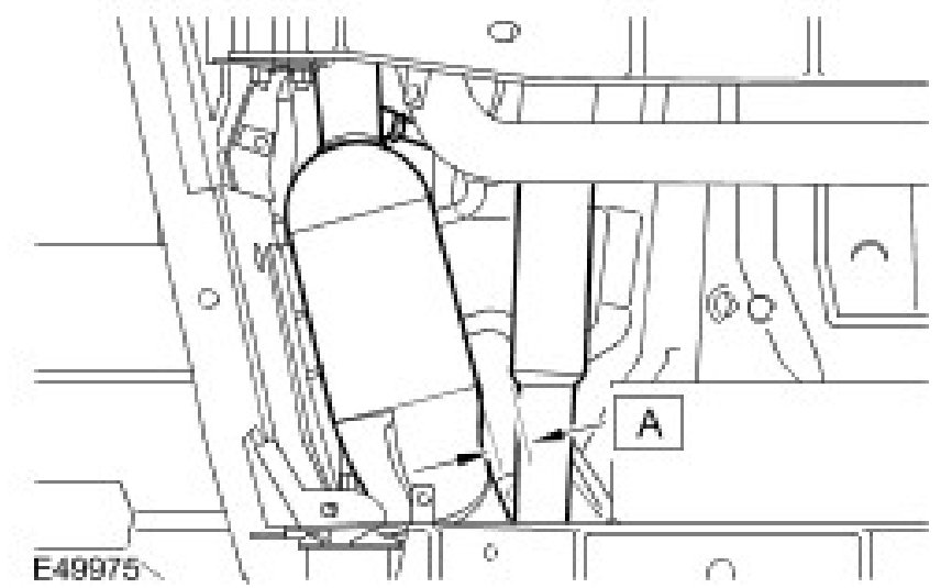 CAUTION: Make sure there is a clearance (A) of 25 mm to 30 mm between the closest points of the LH catalytic converter and the front driveshaft.