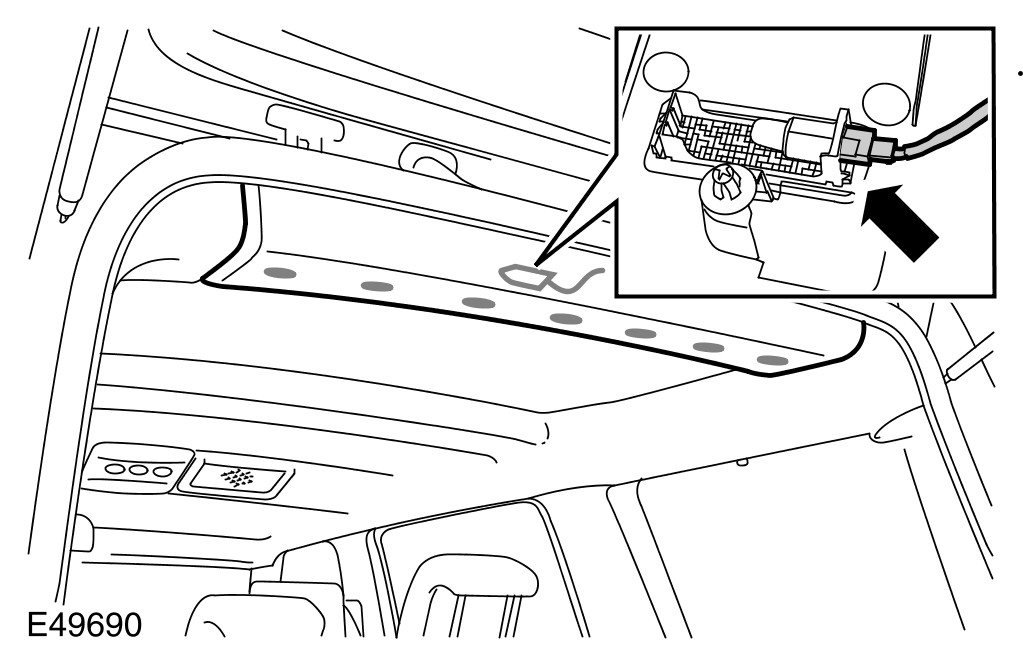 2 Remove the RH A-pillar upper trim panel. For additional information, refer to A-Pillar Trim Panel Pillar Trim