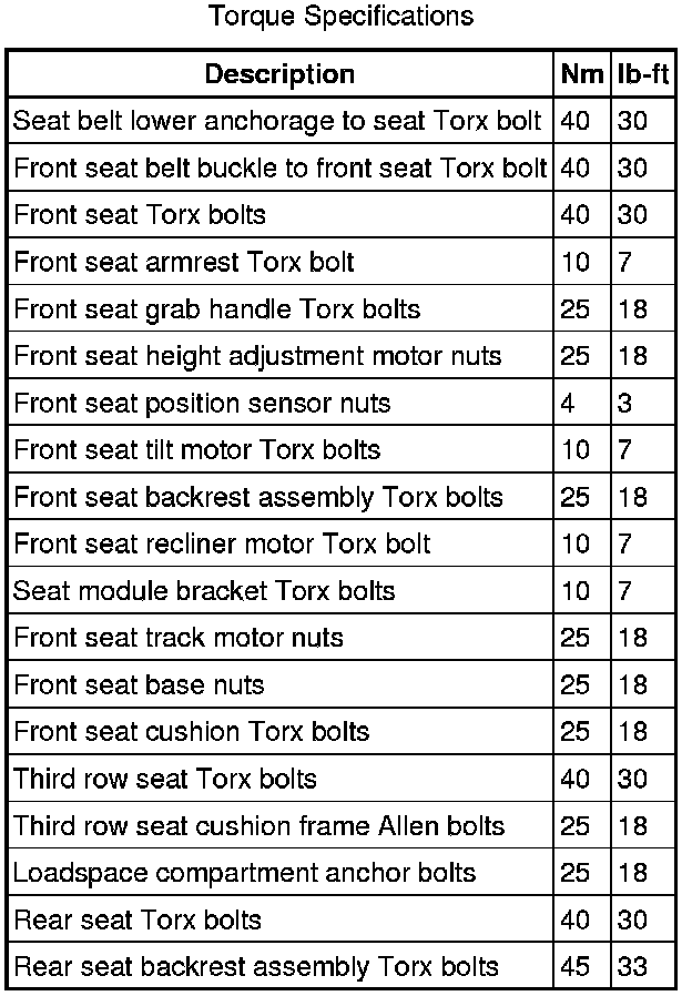 Seats: Specifications