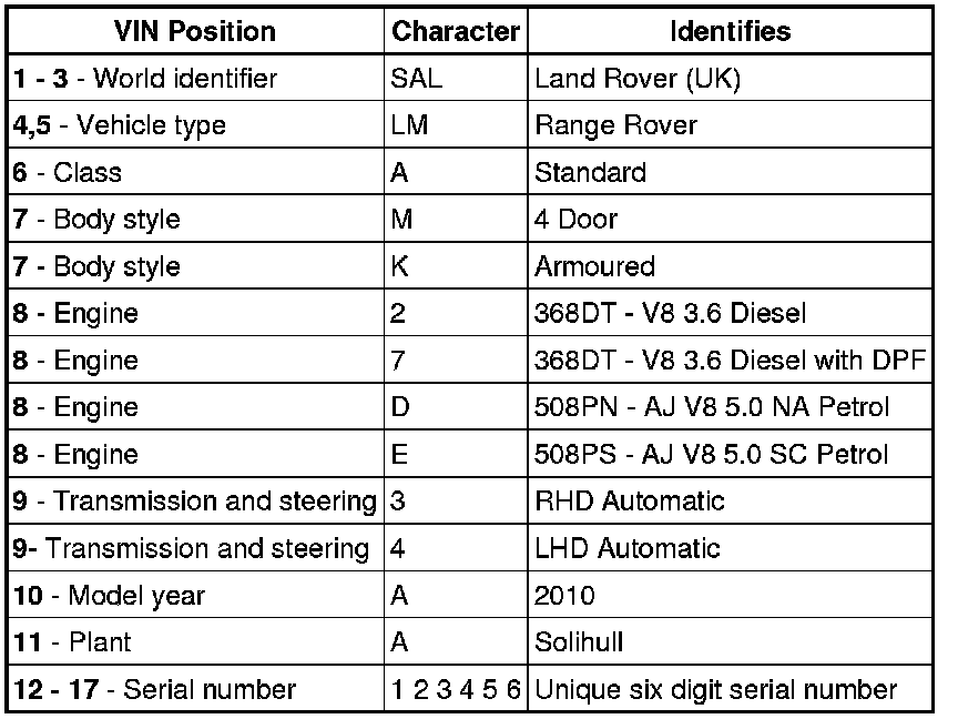 - 3. UK, Europe and ROW - Not NAS/Canada -On the VIN plate attached to the LH inner wing, forward of the suspension turret.