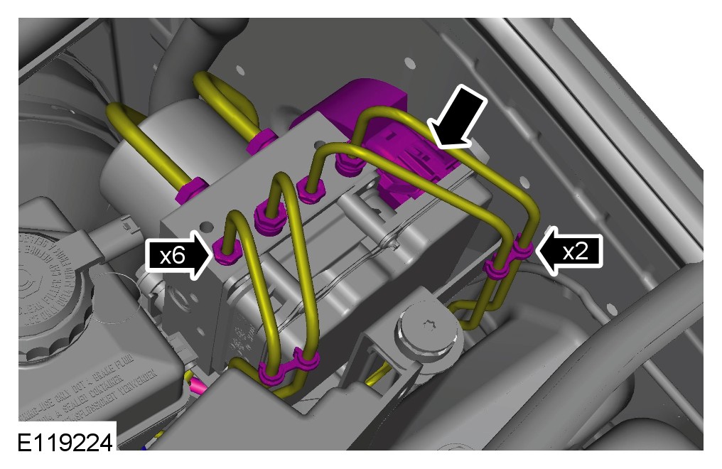 The hydraulic control unit (HCU) mounted to the ABS module cannot be serviced separately. If the HCU requires replacement, then the ABS module must be replaced as a complete assembly.