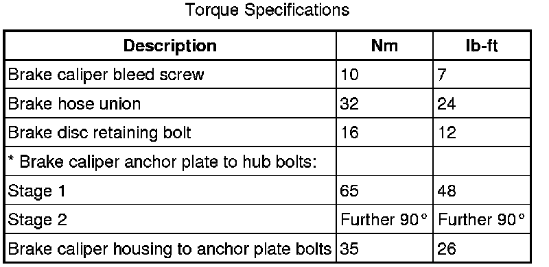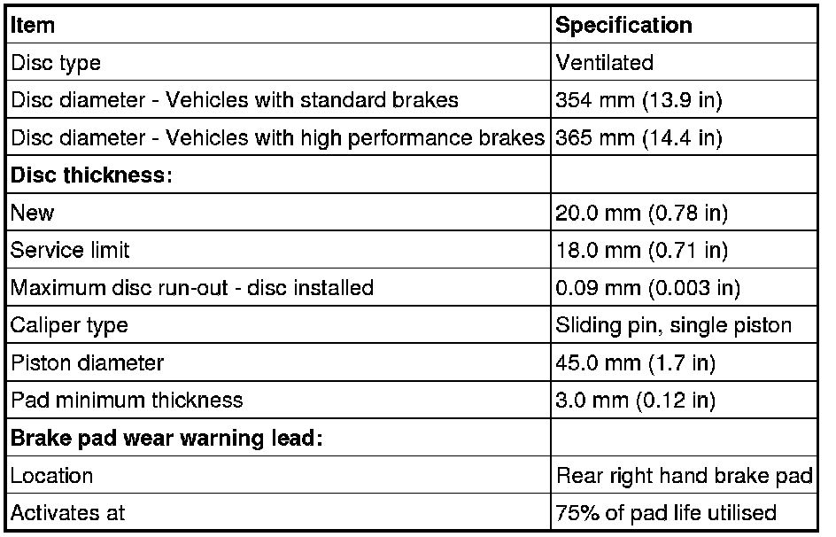 Rear Disc Brake Specifications