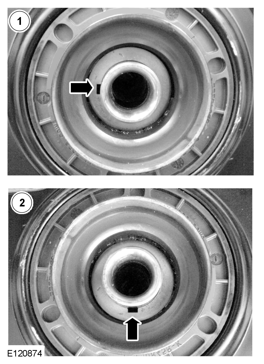 CAUTION: If the noted position of the woodruff key is at the 9 o'clock position, then a new flexplate must be installed. If the woodruff key is in the 6 o'clock position then proceed with the next step.