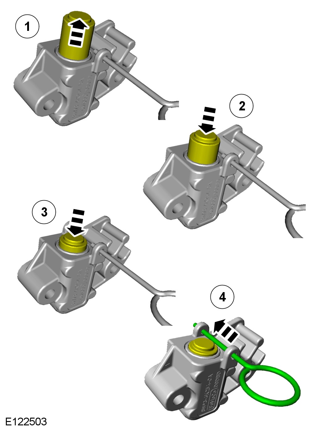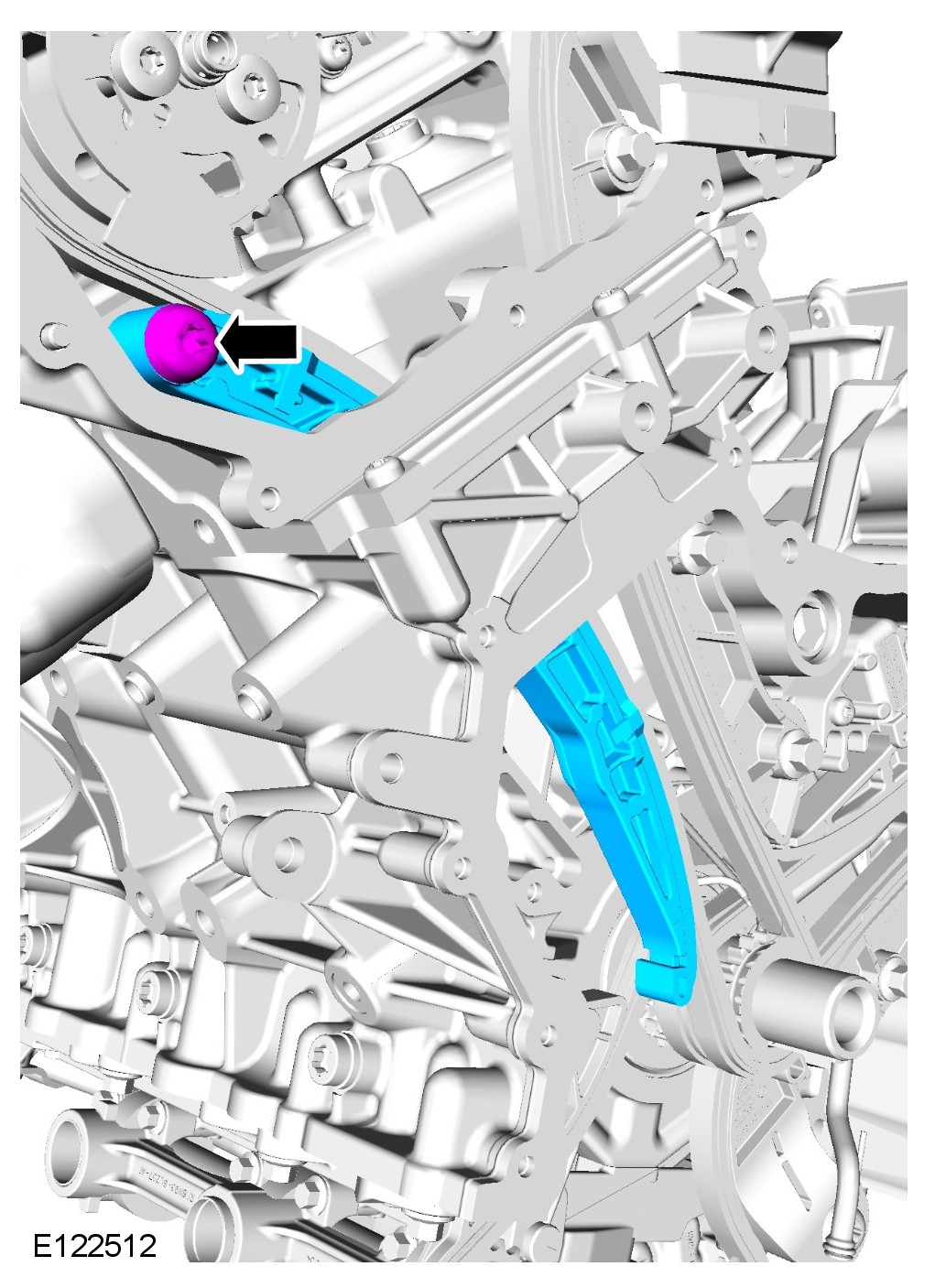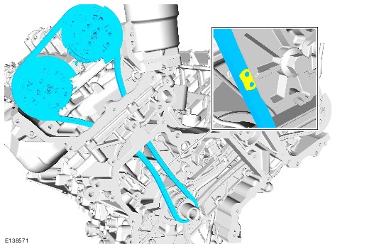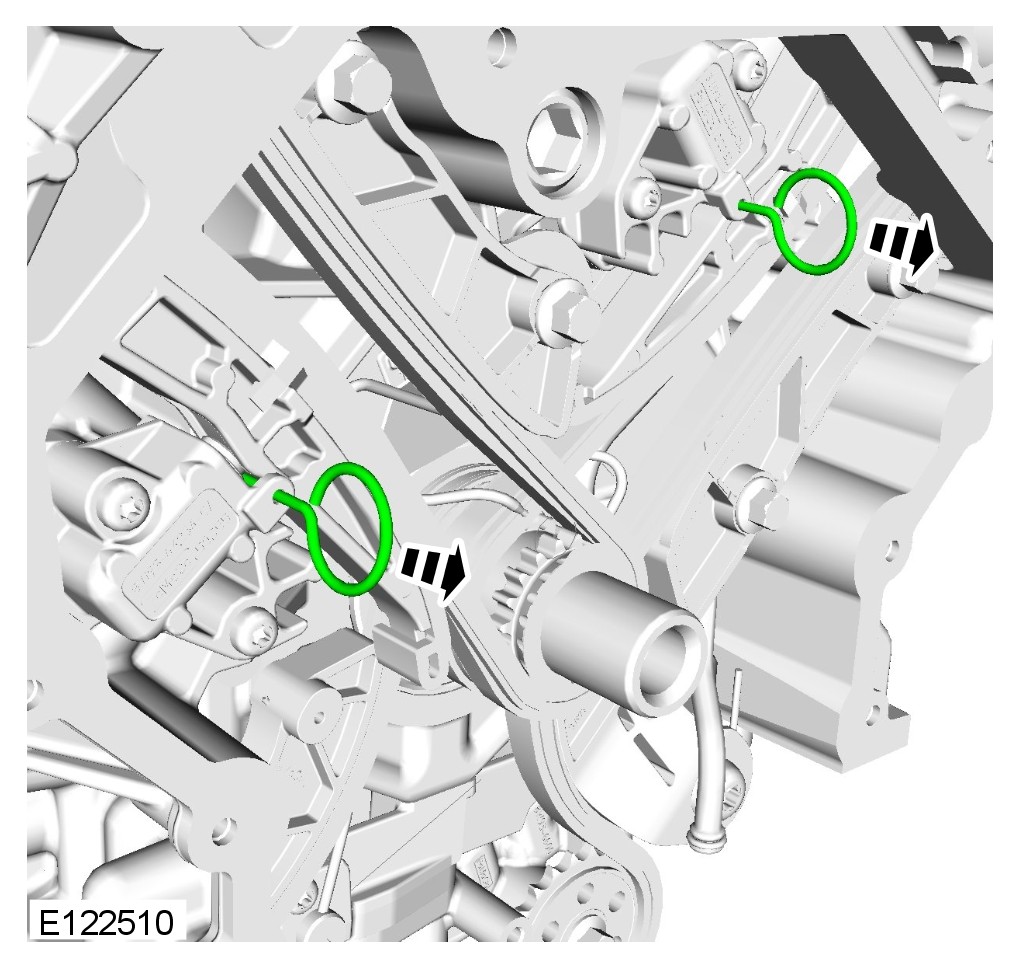 1 Make sure the tensioner piston is fully extended. Then fully depress and lock the tensioner piston with the grenade pin before installation, failure to do this may result in damage to the engine.