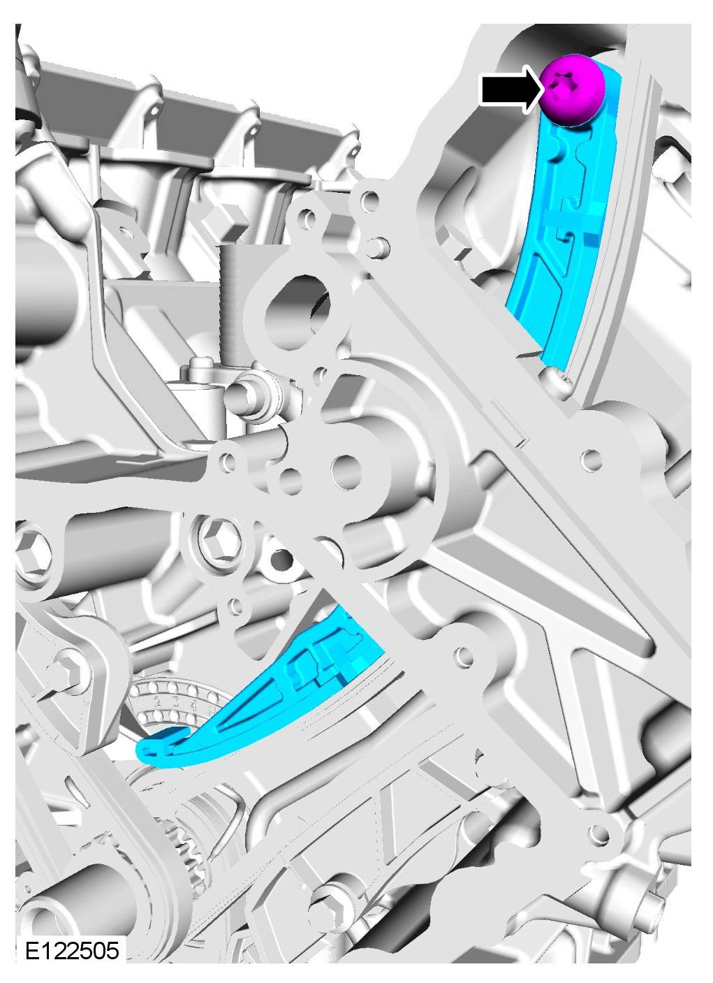 CAUTION: Do not release the timing chain tensioner locking pin at this stage.