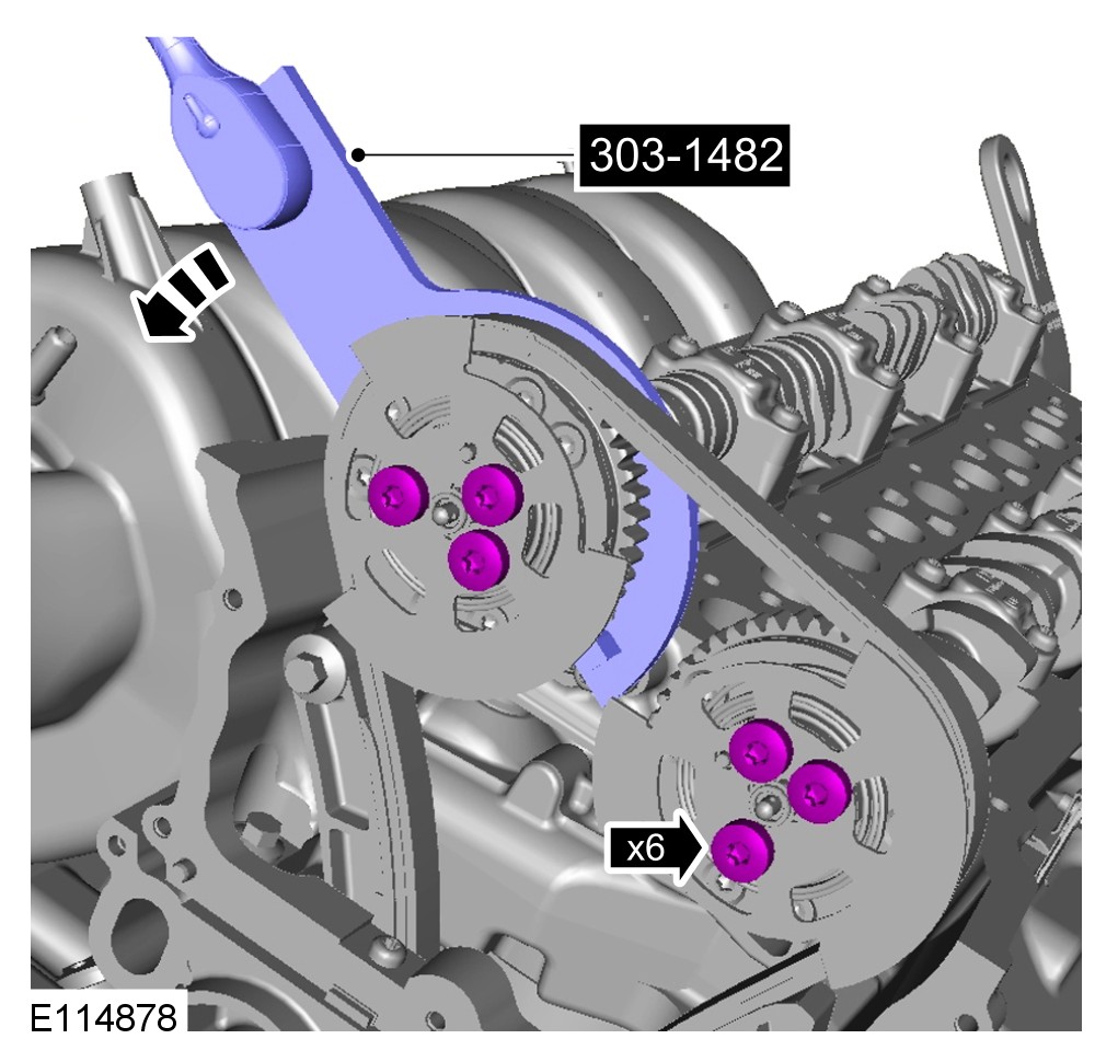 CAUTION: Do not allow the camshafts to rotate.