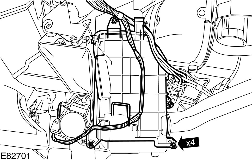 4 Remove the heater and evaporator core housing. For additional information, refer to Heater Core and Evaporator Core Housing - 5.0L SC V8 - AJ133 Heater Core and Evaporator Core Housing