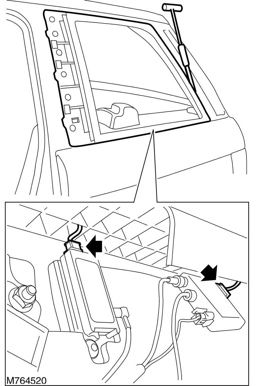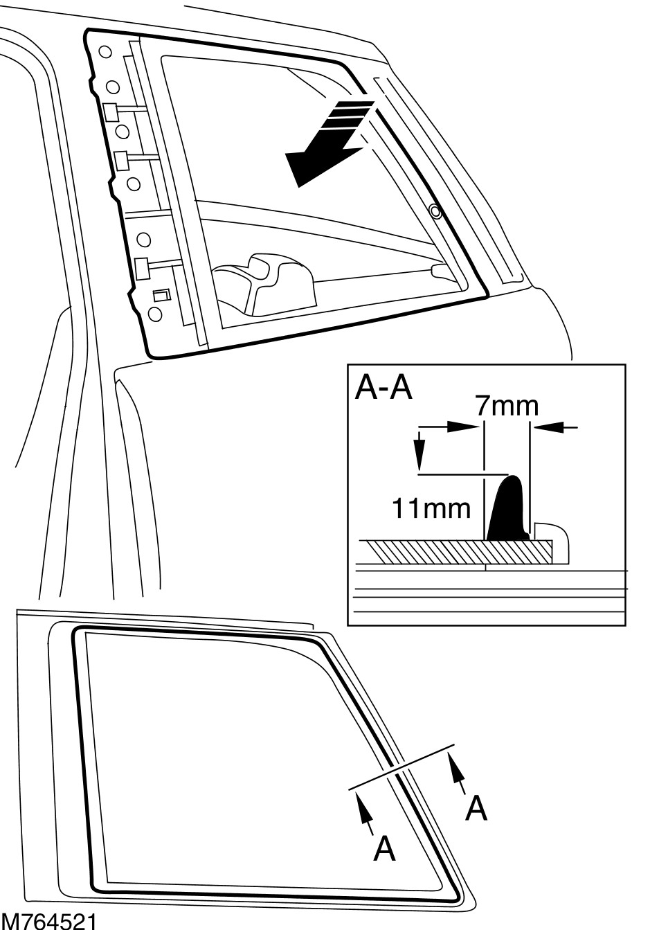 7 Apply a continuous bead of sealant to the rear quarter window glass as shown.
