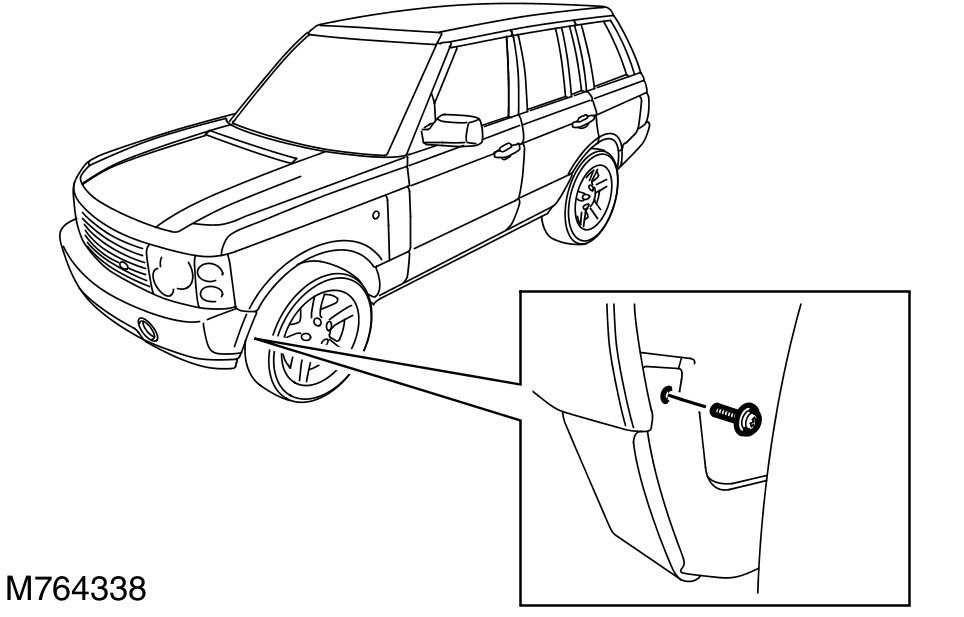 - Release the front lower edge of the fender splash shield for access.