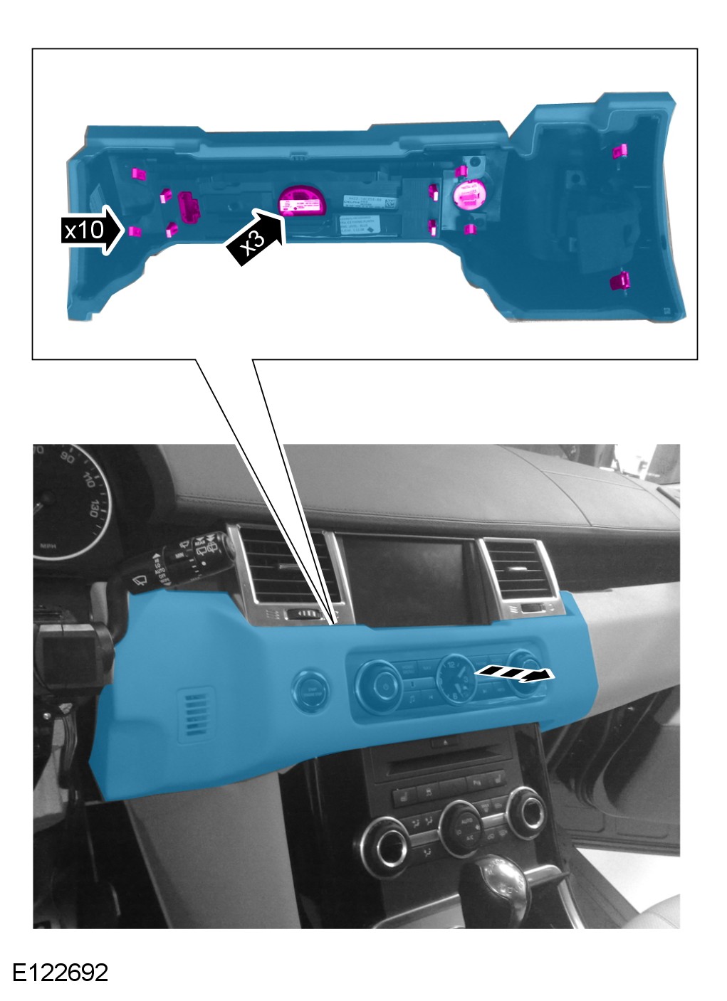 5 Remove the instrument panel centre finisher.