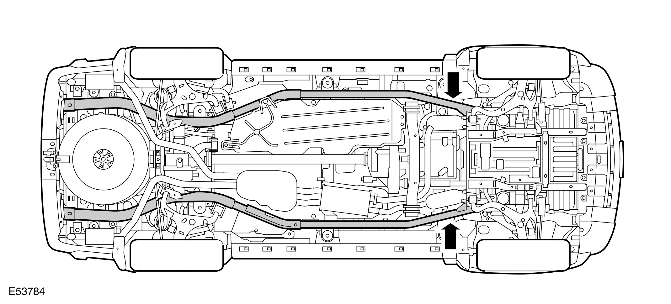 CAUTION: Take care that the lifting pad of the jack is of a suitable size to avoid damaging the heat shield. It is not advisable to use a spacer block between the lifting pad and the rear cross member as this may result in some vehicle instability.
