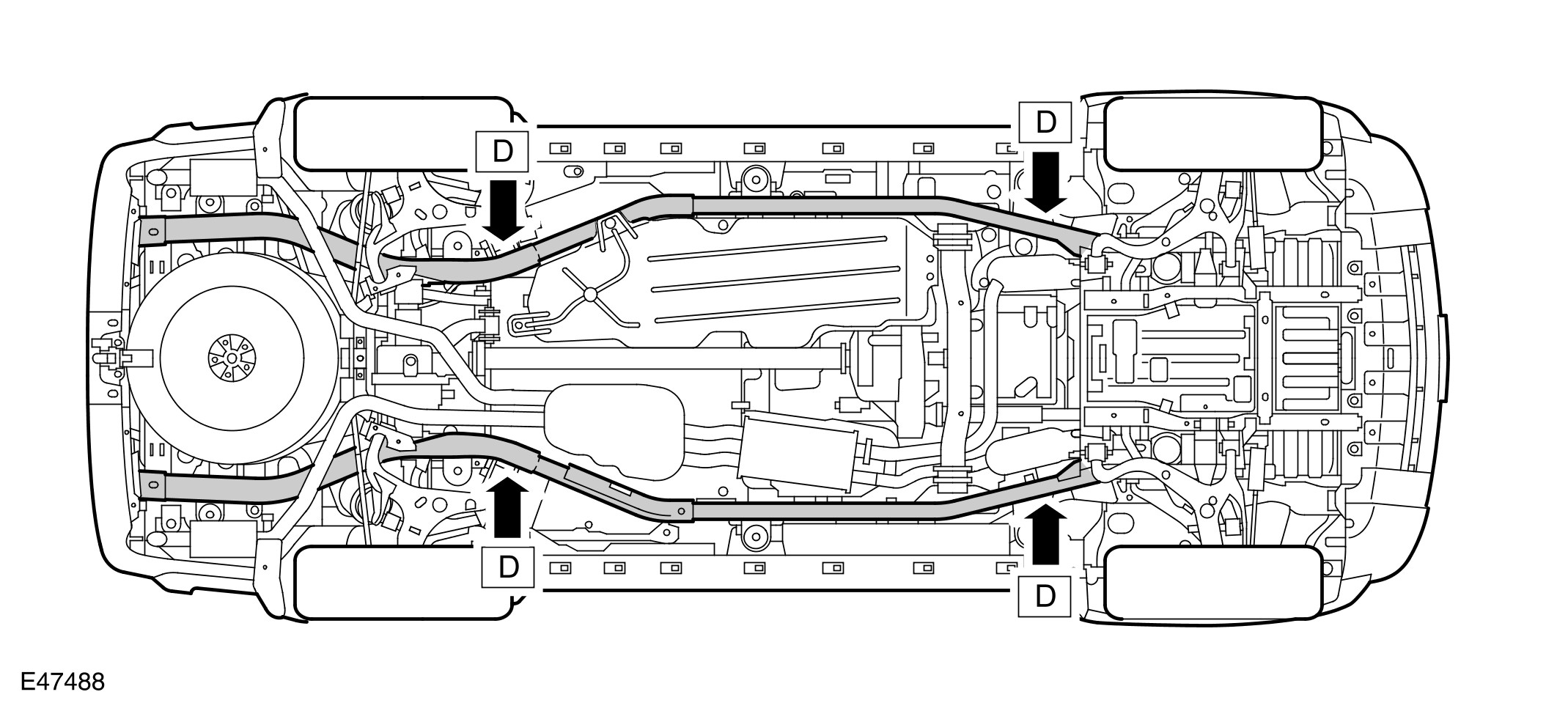 WARNING: Do not commence work on the underside of the vehicle until suitable axle stands have been placed in the correct position.