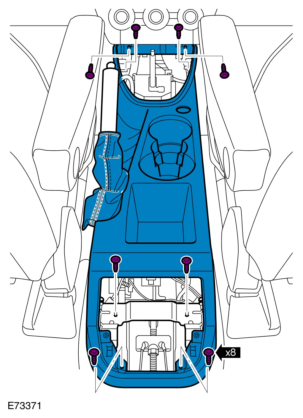 4 Install the floor console.