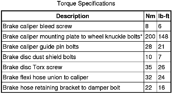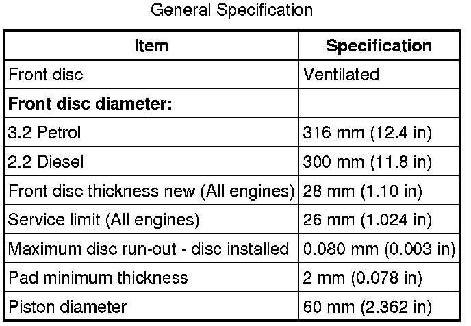 Front Disc Brake Specifications