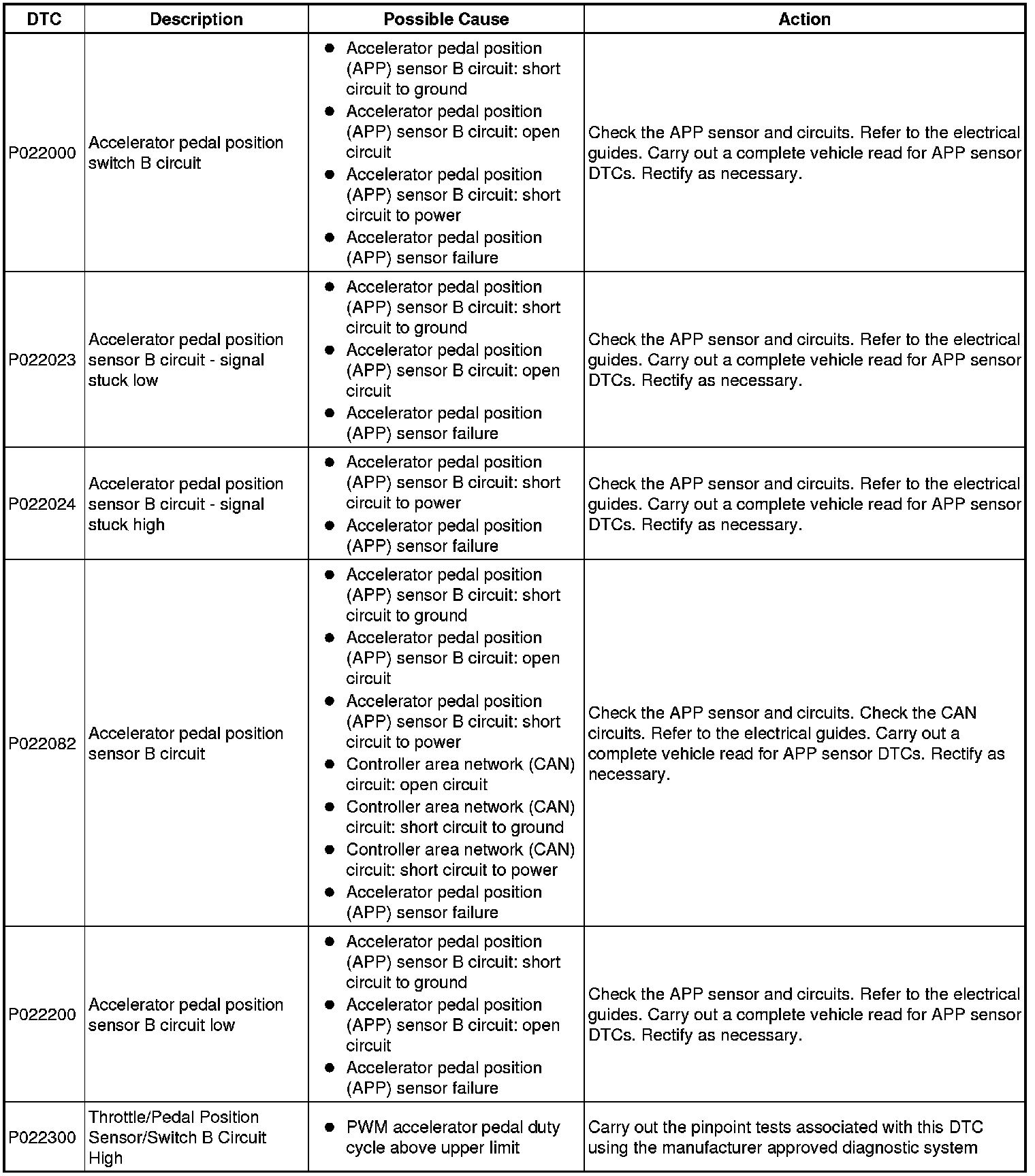 Generic scan tools may not read the codes listed, or may read only five digit codes. Match the five digits from the scan tool to the first five digits of the seven digit code listed to identify the fault (the last two digits give extra information read by the manufacturer-approved diagnostic system).