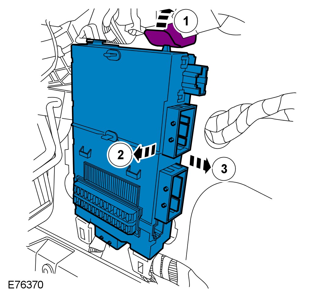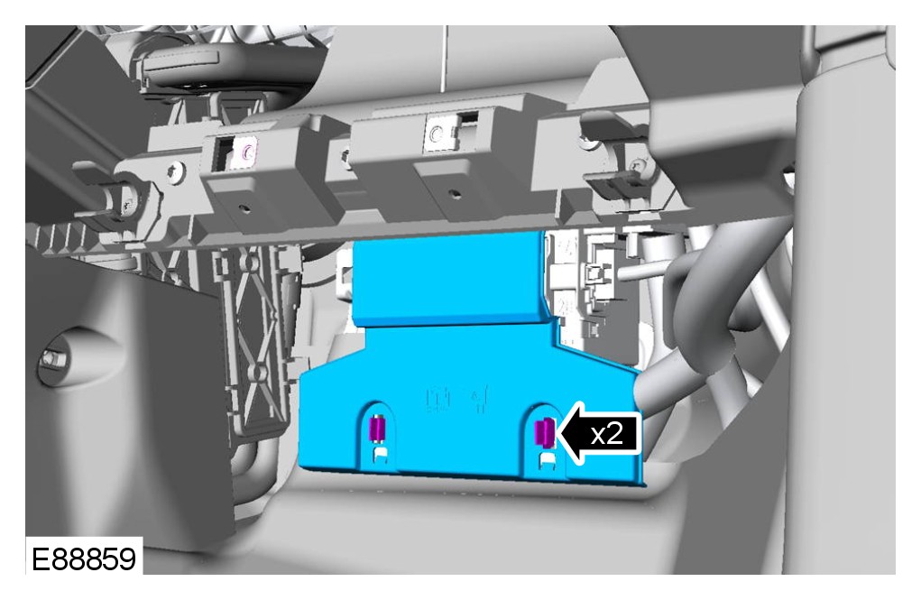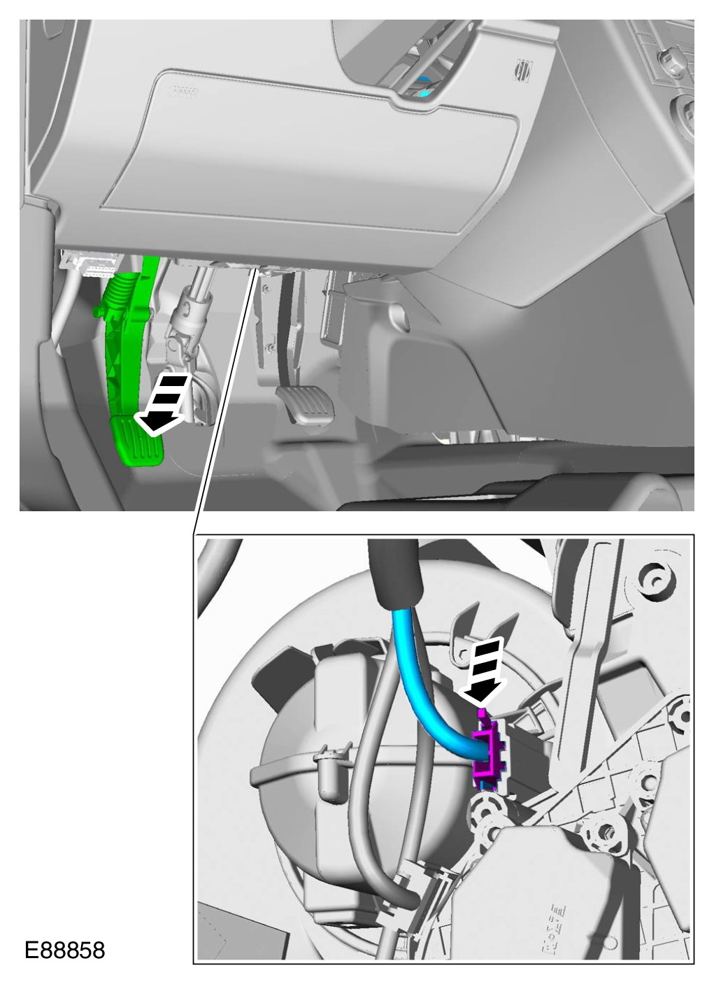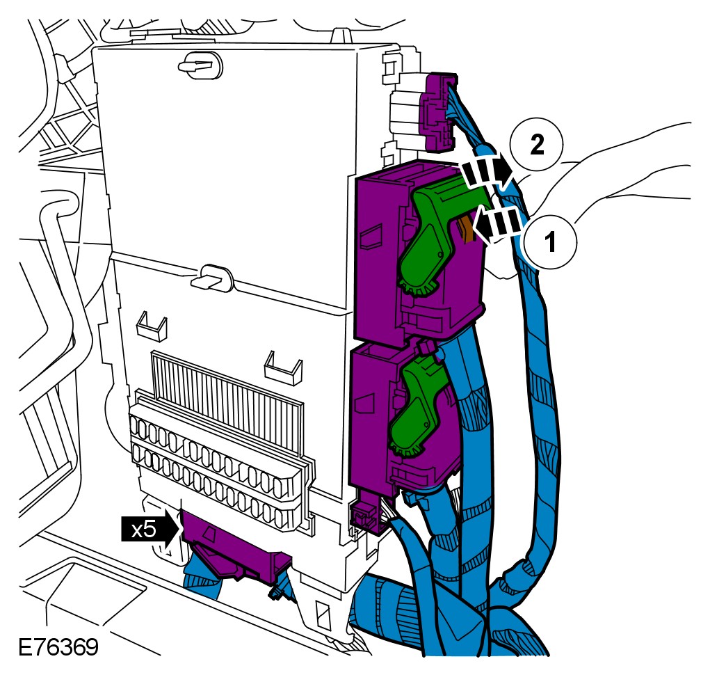 7 Connect the 5 electrical connectors to the CJB and secure the front carpet.