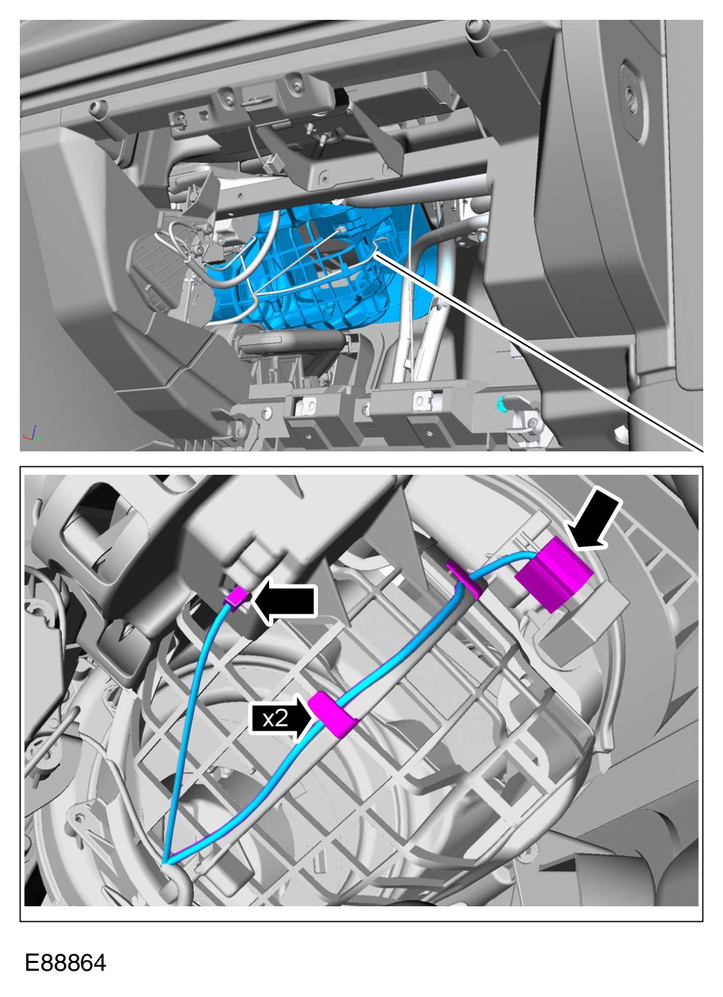 The recirculation blend door must be closed in order for the removal of the recirculation blend door housing.