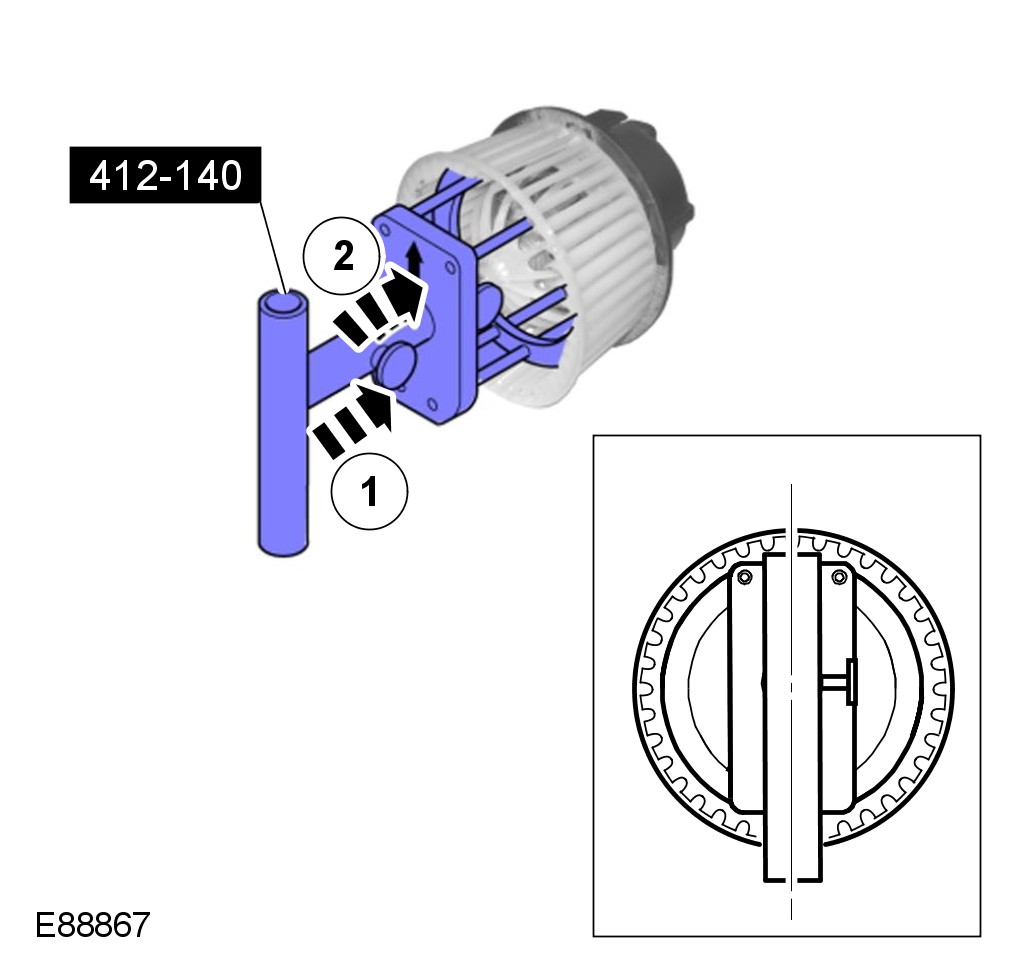 7 With the marking upwards, use the guide to install the remainder of the special tool to the blower motor.