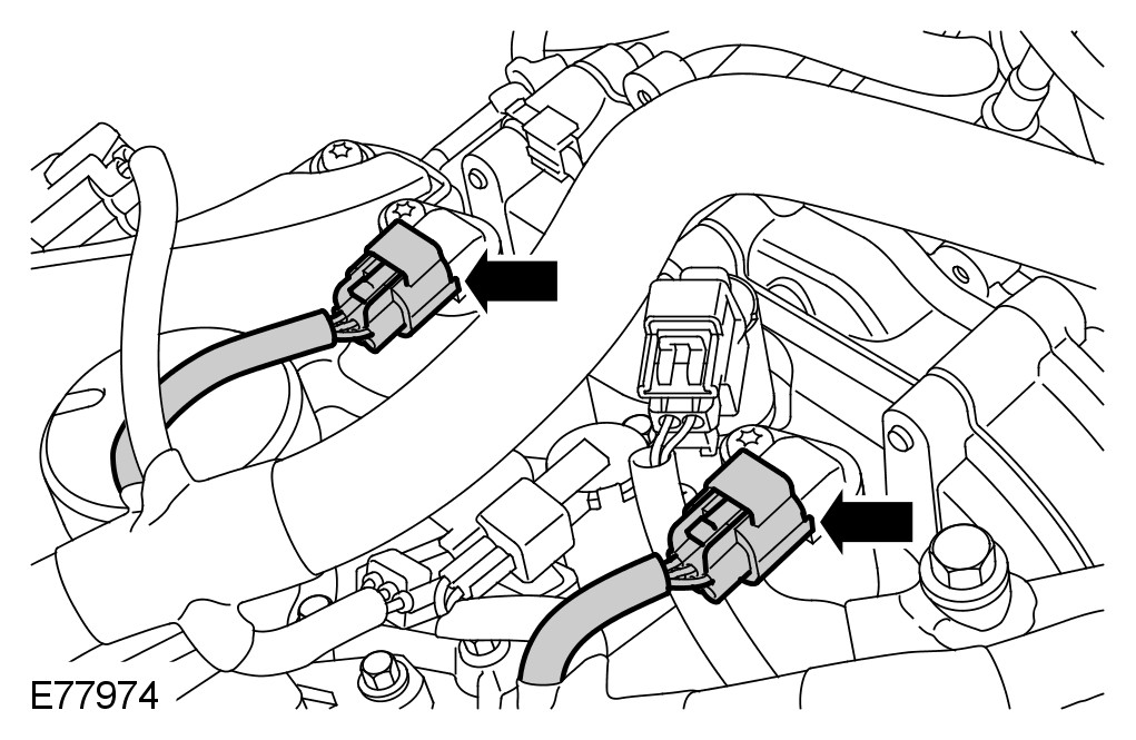8 Release and disconnect the 2 LH HO2S electrical connectors.