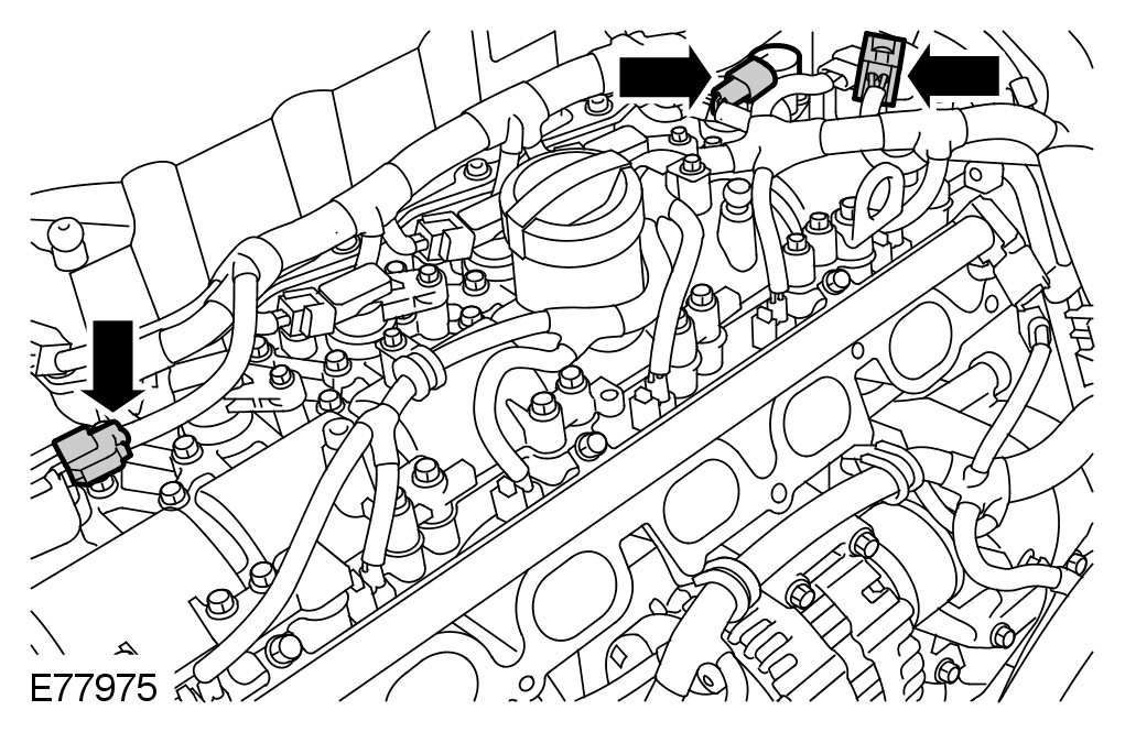 10 Disconnect the 3 variable camshaft timing solenoid electrical connectors.