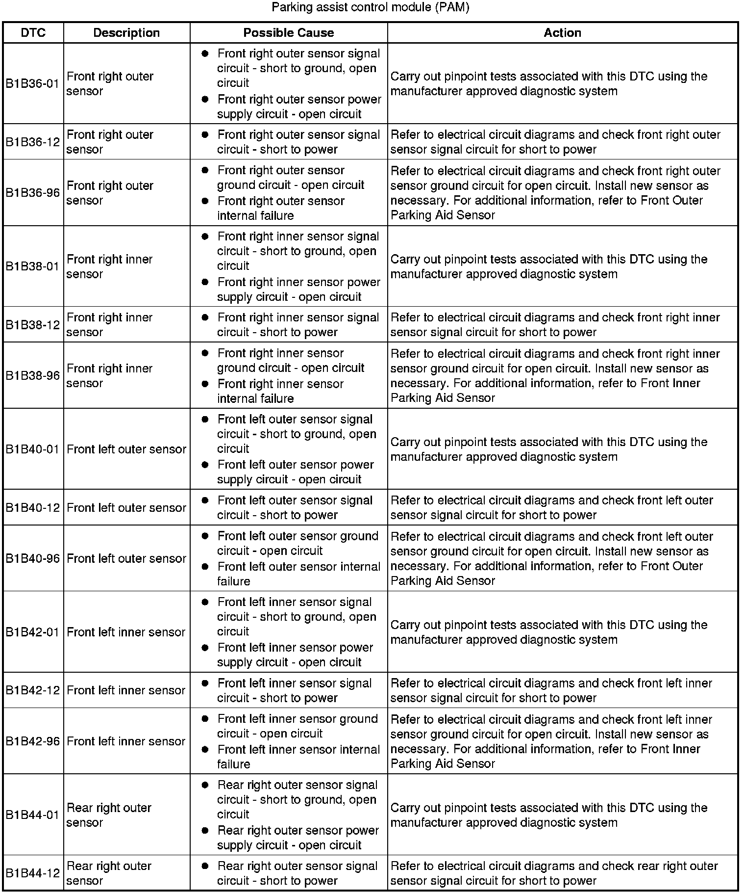 For a detailed description of the parking assist control system, refer to the relevant Description and Operation section in this product. For additional information, refer to Parking Aid Description and Operation
