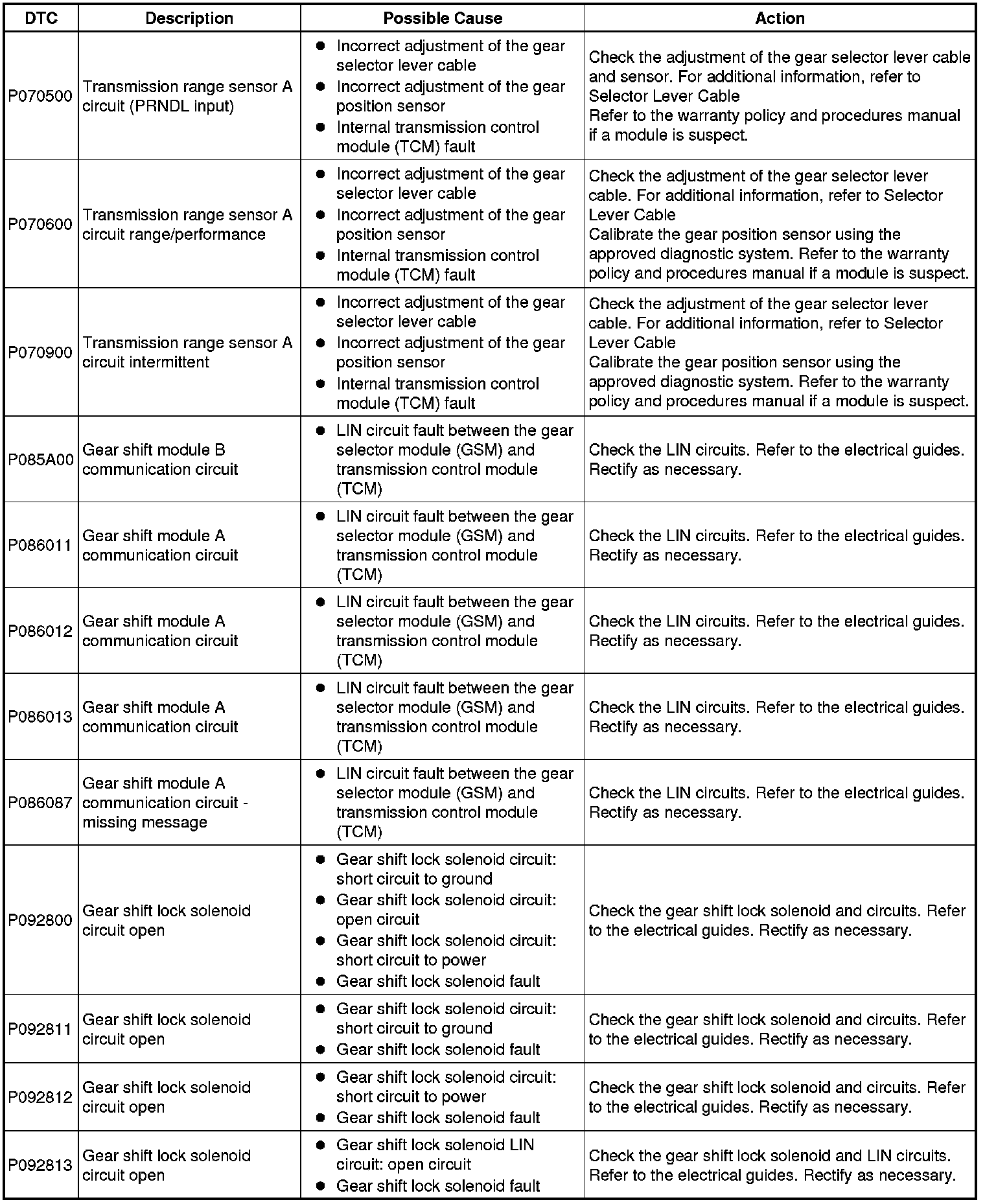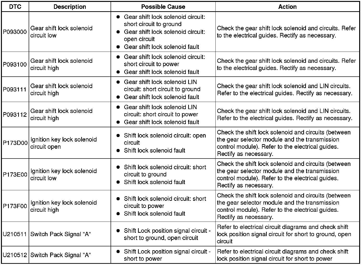 Generic scan tools may not read the codes listed, or may read only five digit codes. Match the five digits from the scan tool to the first five digits of the seven digit code listed to identify the fault (the last two digits give additional information read by the manufacturer approved diagnostic system).