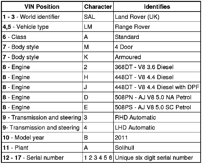 - 3. UK, Europe and ROW - Not NAS/Canada -On the VIN plate attached to the LH inner wing, forward of the suspension turret.