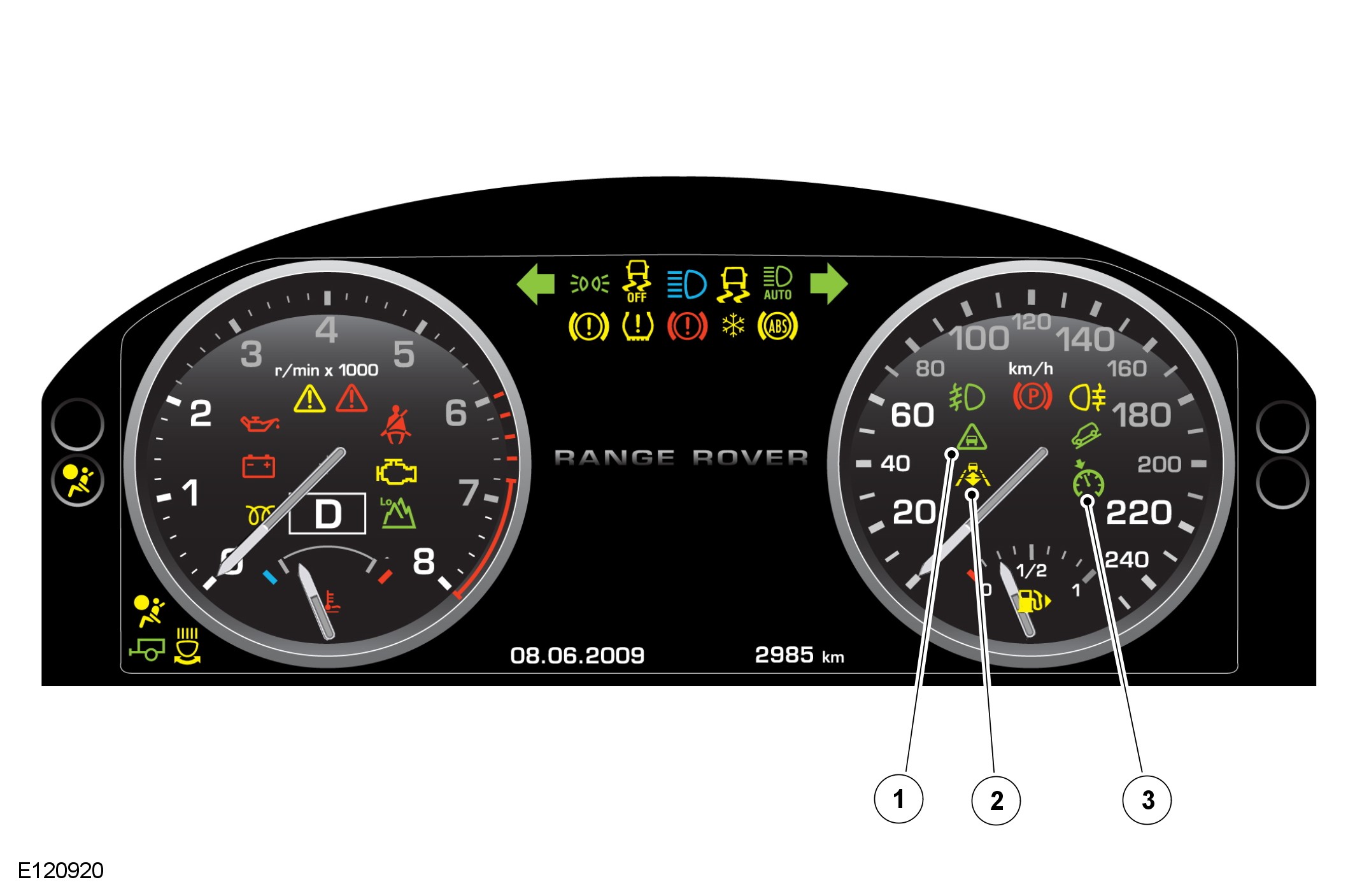 When the target speed has been set, a green marker will appear on the outer circumference of the speedometer in the instrument cluster, adjacent to the set speed. If the set speed is changed the marker will move accordingly.
