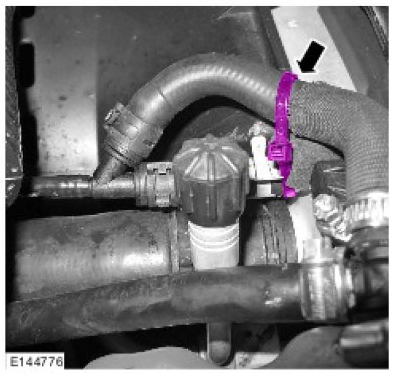 *6. Install the new coolant hose (LR04428) and hose from kit LR040874:*