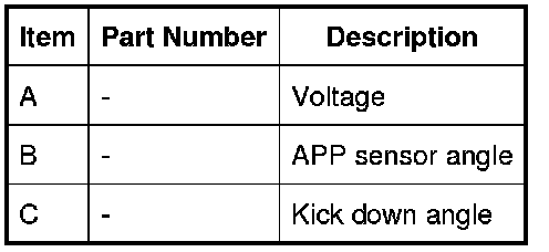 The APP (accelerator pedal position) sensor has two potentiometer tracks which each receive a 5 V input voltage from the ECM (engine control module). Track 1 provides an output of 0.5 V with the pedal at rest and 2.0 V at 100% full throttle. Track 2 provides an output of 0.5 V with the pedal at rest and 4.5 V at 100% full throttle. The signals from the two tracks are used by the ECM (engine control module) to determine fueling for engine operation and also by the ECM (engine control module) and the TCM (transmission control module) to initiate a kickdown request for the automatic transmission.