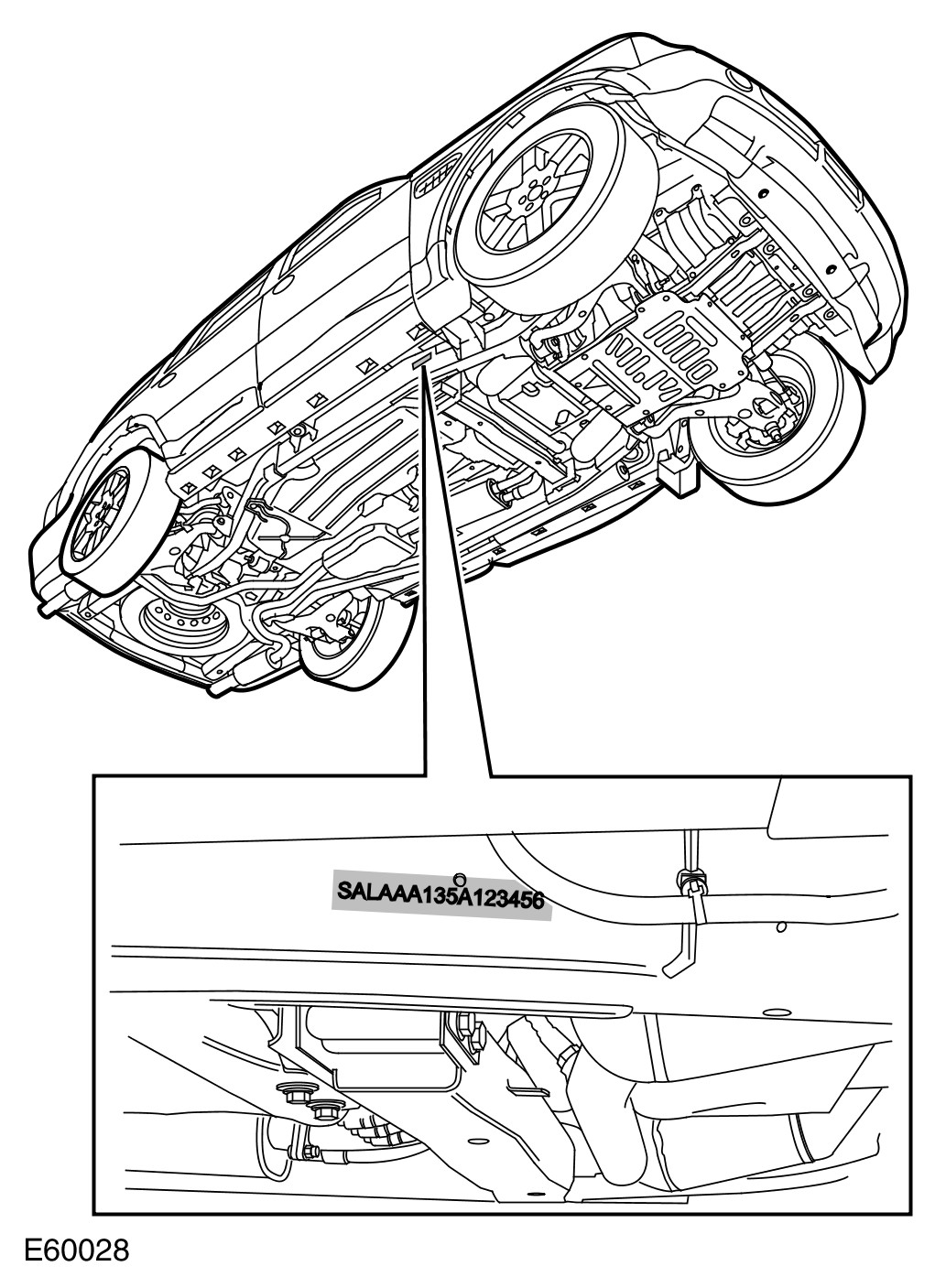 - 1. Stamped on the side of the RH longitudinal member, rearward of the body front mounting.