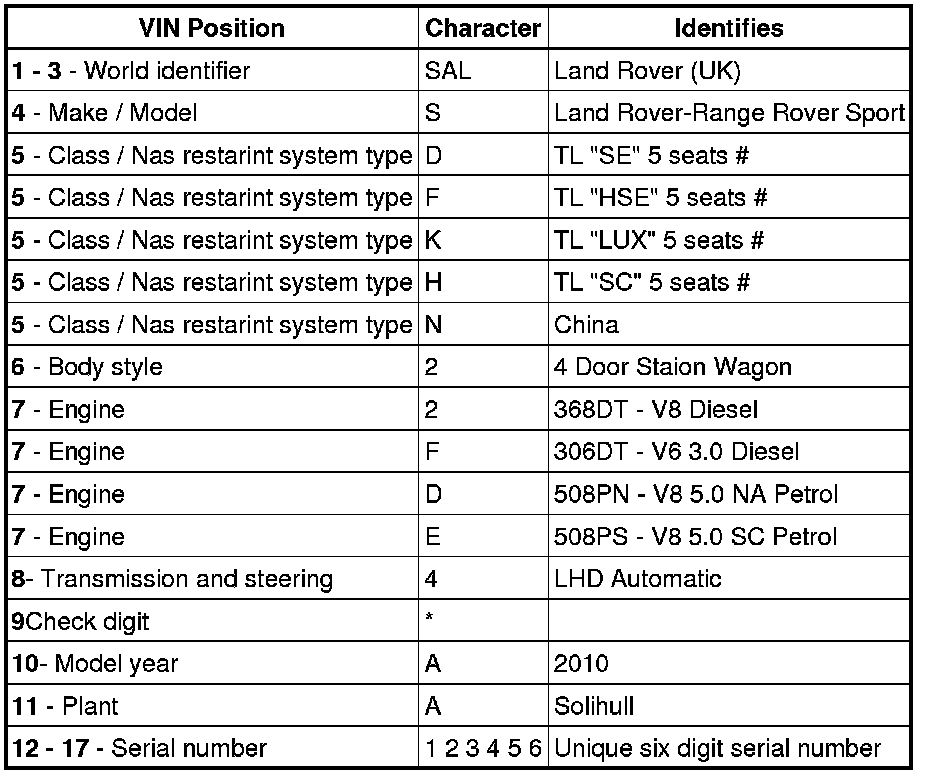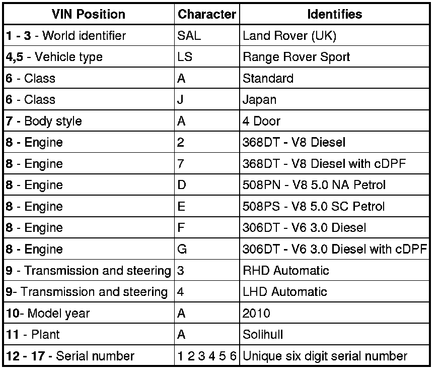3.6 Litre V8 and 3.0 litre V6 Diesel Engine Serial Number