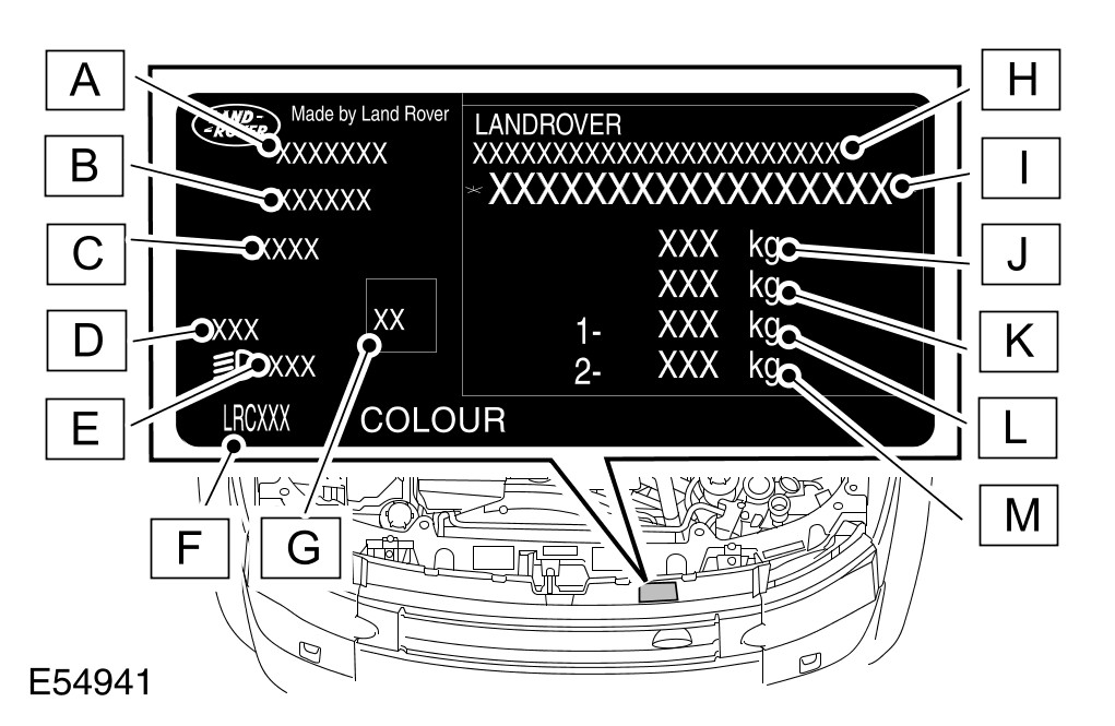 - 3. UK, Europe and ROW - Not NAS/Canada -On the VIN plate attached to the bonnet locking platform.