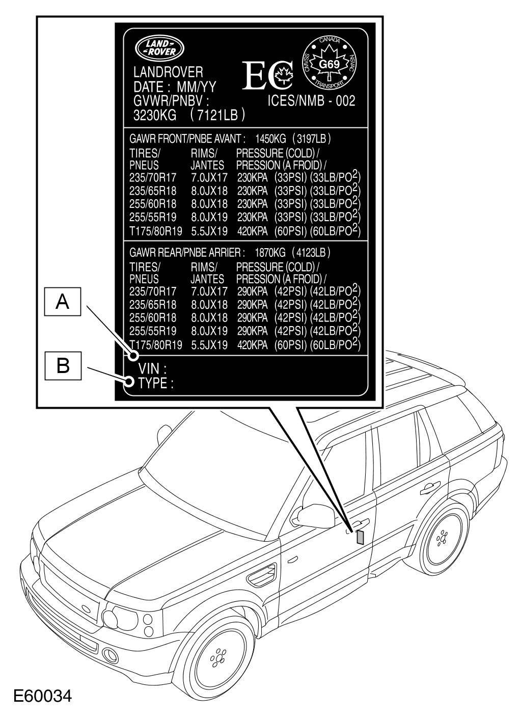 VIN/Tire Pressure Specification Label - Canada only
