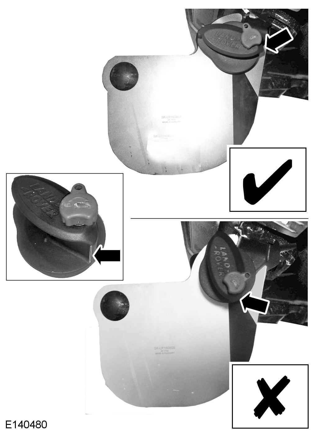 - If the tow bar release handle points outside of the red area of the special tool, then the tow bar mounting is correct and no further action is required.