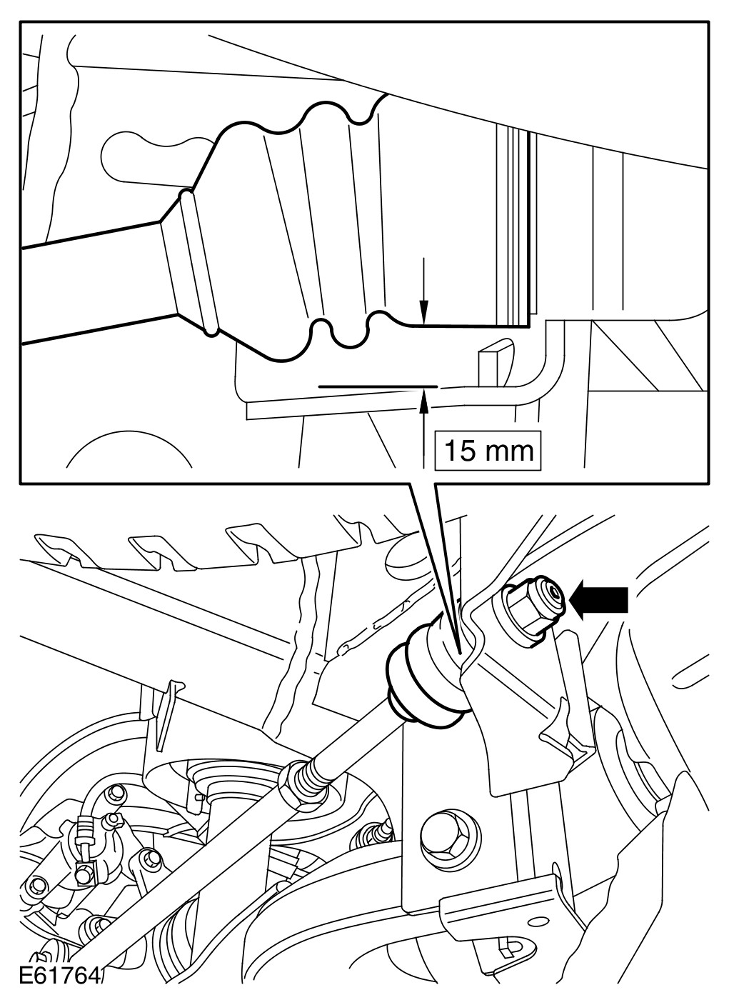 - Loosen the toe link inner ball joint retaining nut.